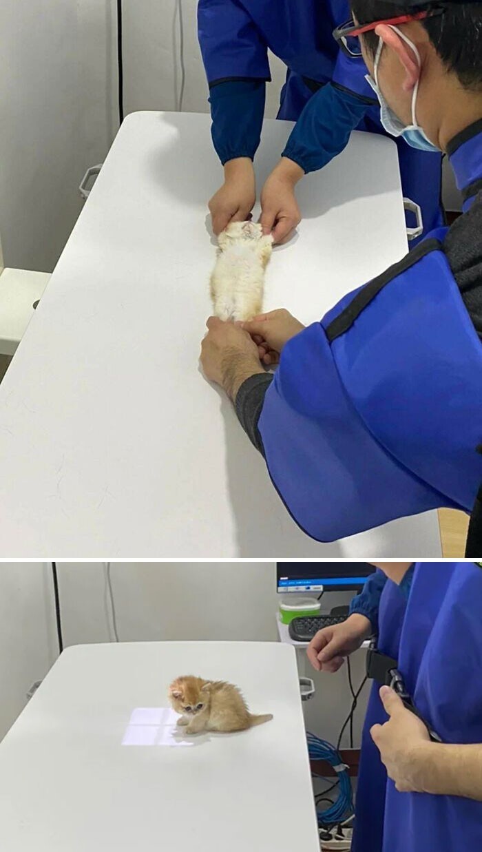 This adorable kitty was taken to the vet for a check-up by a man who picked her up off the street.