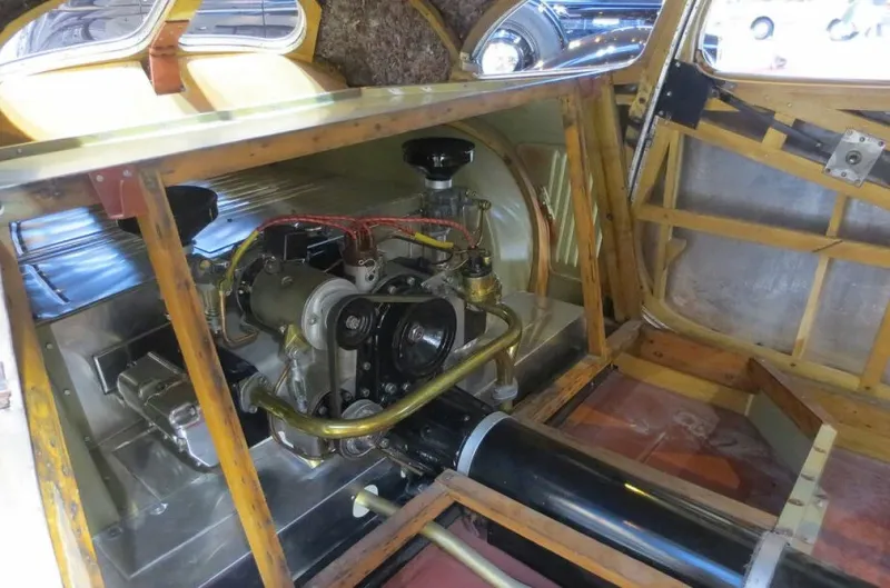 The length of the body is 4.85 meters, while the wheelbase is 3.2 meters. Width 1.68 m, it is also curious that the car has a different track. Front 1.25 m, rear axle - 1.3 m. At the base of the frame is a central pipe, which simultaneously serves as a 40-liter gas tank.