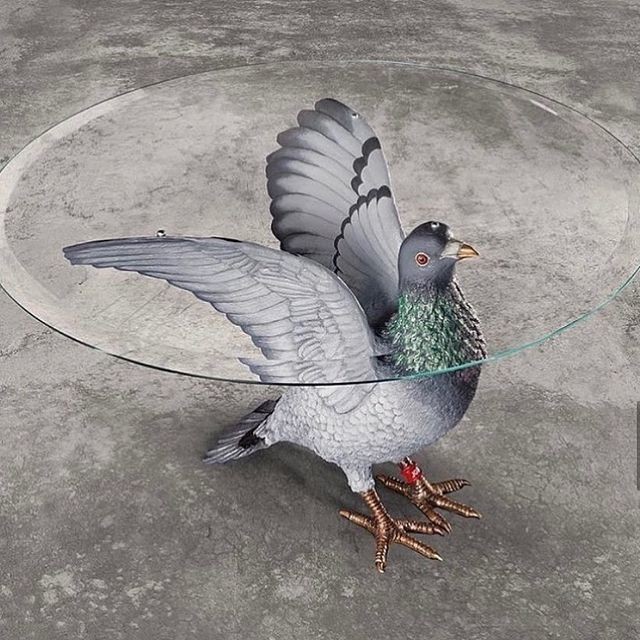 There is a leather crab chair and a glass coffee table on wings of a dove, and an ottoman in the form of corn. In general, everything for which diligently hunt lovers of everything extravagant and super-unusual, to take you to your lair. I wonder how their guests react to everything these decorations at home?