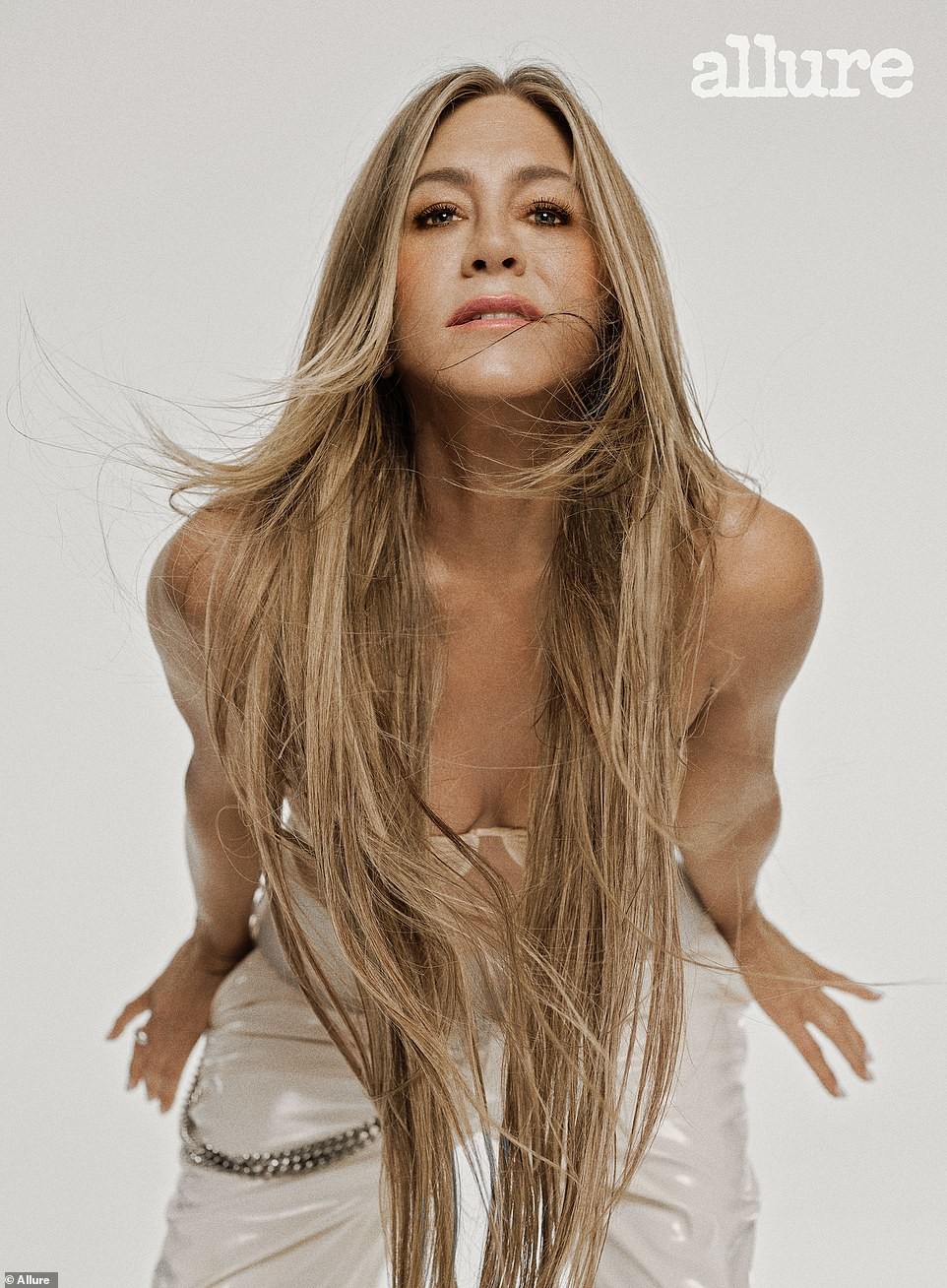 Jennifer Aniston bares her body and soul in a new interview for Allure magazine. The 53-year-old actress was photographed in a tiny wearing a Chanel bra and opened up about her struggle with infertility.