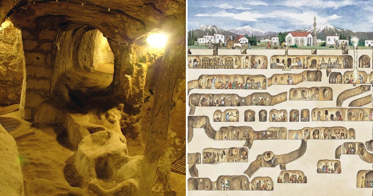 In 1963, a resident of the Nevsehir province in Turkey was doing home repairs and decided to tear down the wall. Behind it, he discovered a secret room with a narrow a corridor that led to a cave-like room. So he discovered abandoned underground city of Derinkuyu, the largest cave settlement Cappadocia.