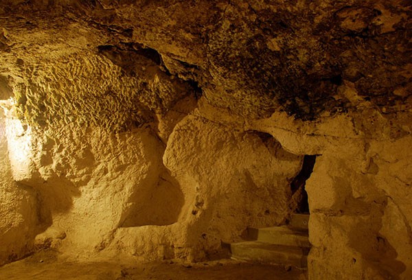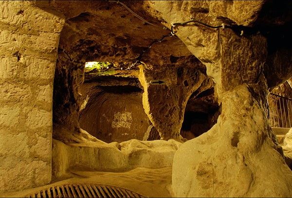 Underground tunnels lead to gigantic chambers where there were schools, wine cellars, oil presses, churches, halls for assemblies, shops, tombs, arsenals, cattle pens, escape routes and wells separated from surface water.