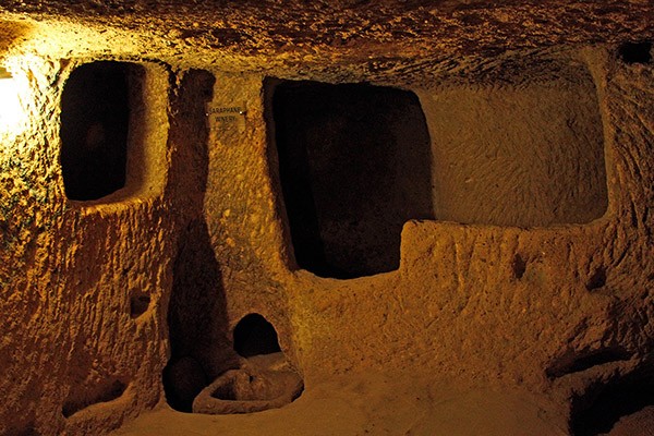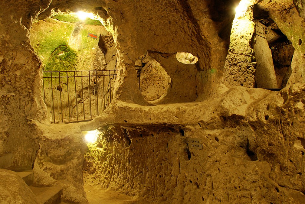 Kilometers and kilometers of tunnels turned black from the torches with which people have roamed them for centuries. Derinkuyu connects with other cities in area, which can simultaneously support tens of thousands of human.
