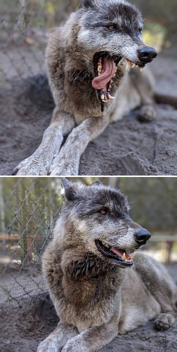 The previous owner left this wolf dog on the street. The pet became too big, and the owner could no longer take care of him. To Fortunately, kind people saved him, and now the dog lives in the reserve