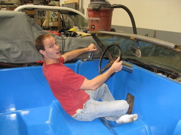 After finishing with the interior and plumbing, the friends proceeded to paint and bodywork. The car was supposed to be not only the fastest jacuzzi in the world, but also look great when it will fly on full speed through the salt flats of Bonneville, Utah.