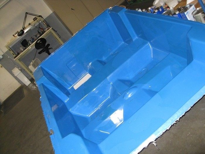 When they were done, they covered the mold with several layers of fiberglass and filled it with gallons of plastic.