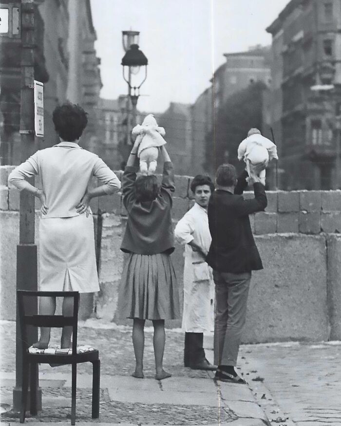 34. Residents of West Berlin show their children to grandparents living in East Berlin, 1961