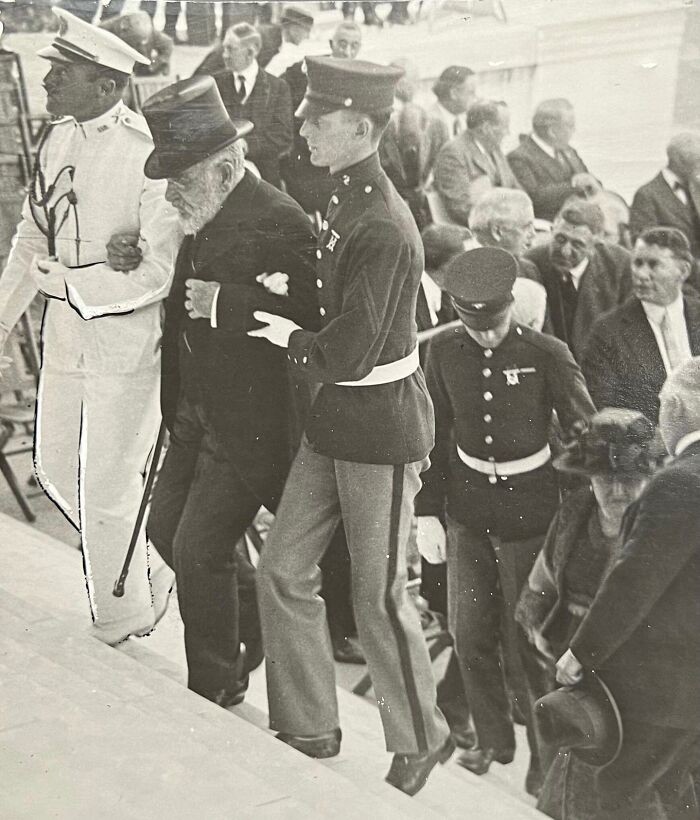20. May 1922: To 78-year-old Robert T. Lincoln (son Abraham Lincoln) being helped up the steps at the opening Lincoln Memorial in Washington DC