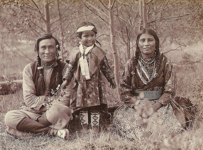 2. Representatives of the Nakoda tribe, Samson Beaver with his wife Leah and their daughter Frances Louise, 1907