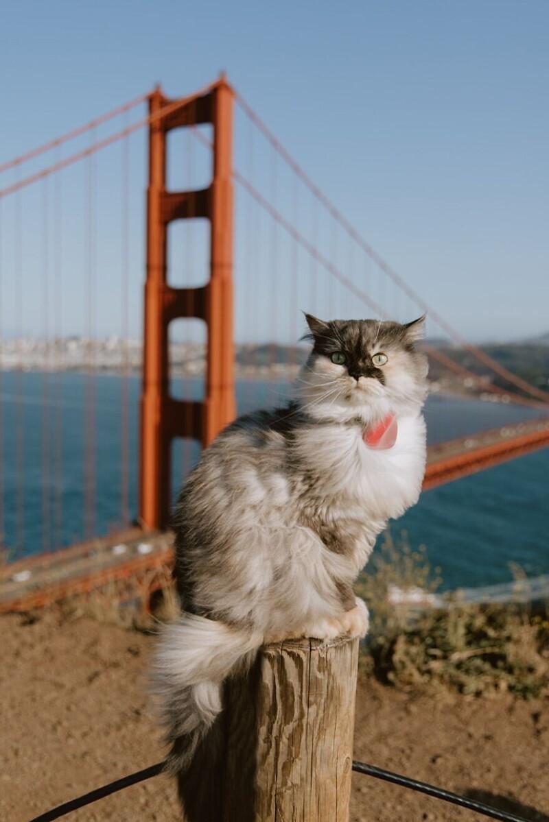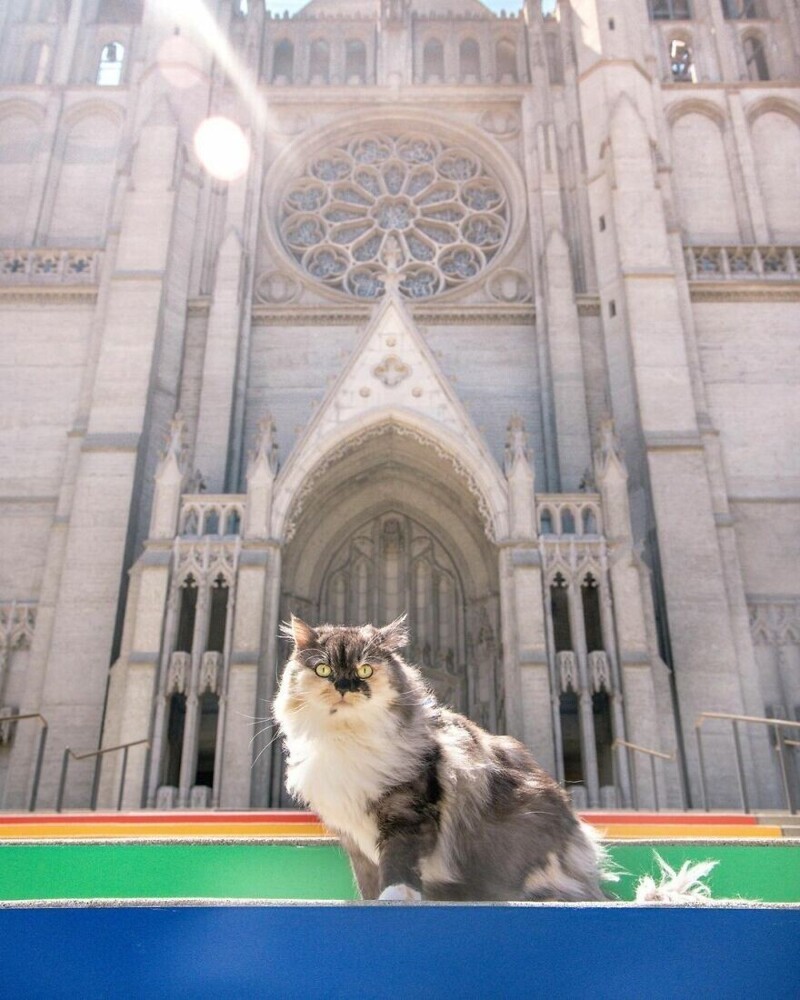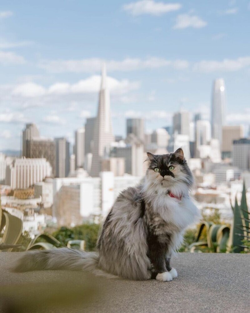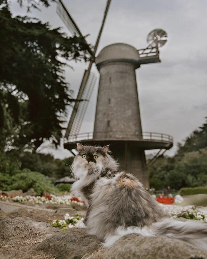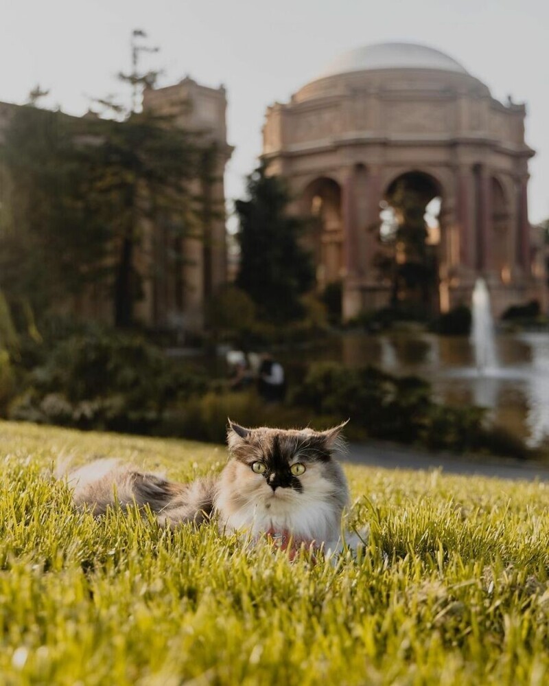 Pumpkin is such a kind and sociable creature that the owners even decided to assign her the status of a cat-therapist. She took a little course, and officially became a therapy animal. Now Pumpkin travels with their masters in various American cities, and for the most part explores interesting places in San Francisco. Check out her adventures: