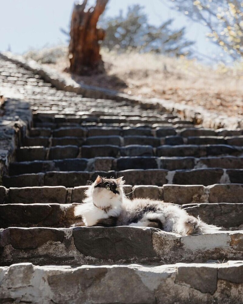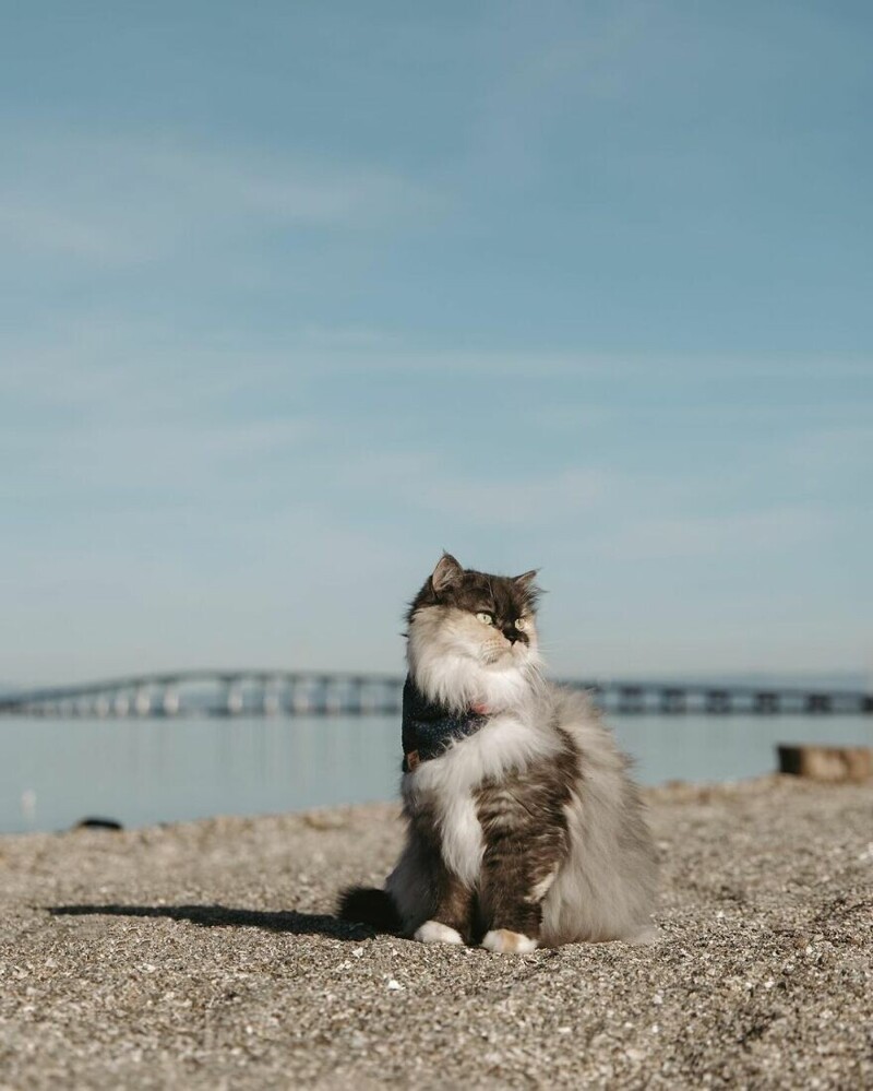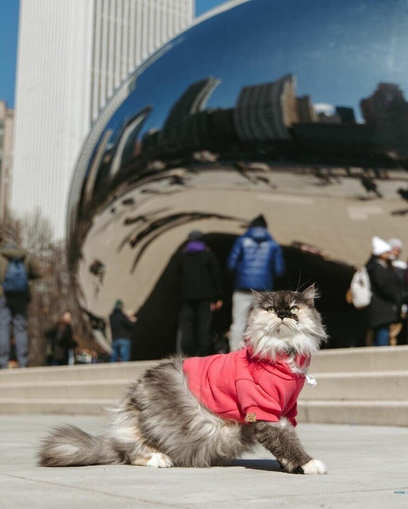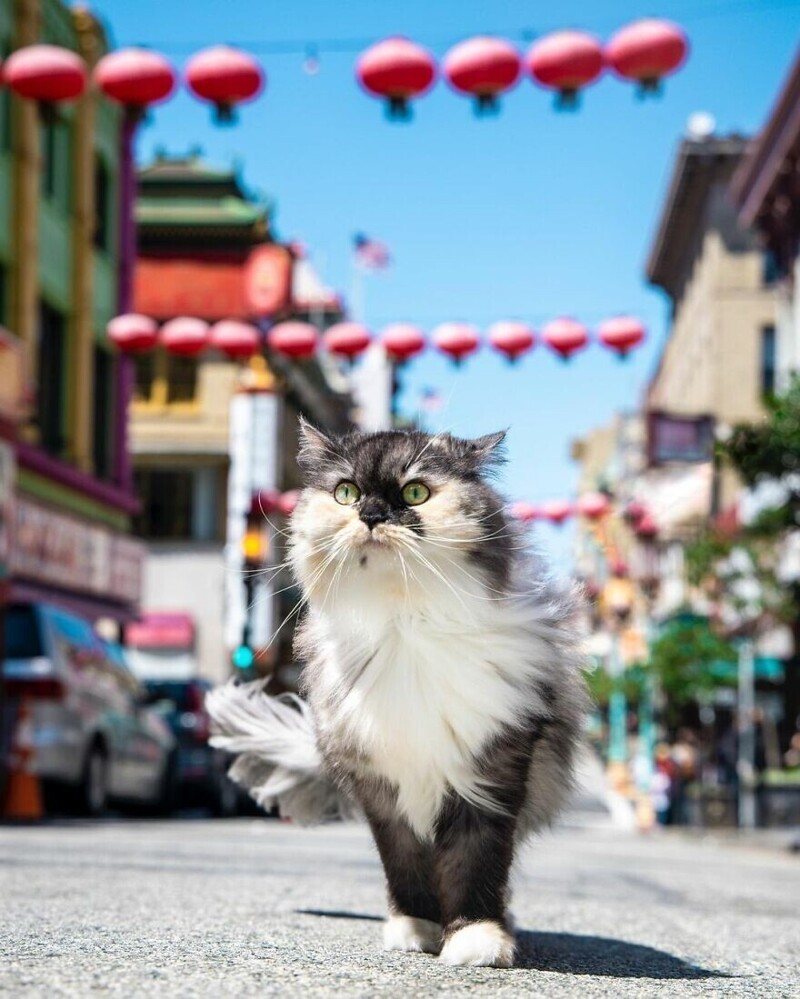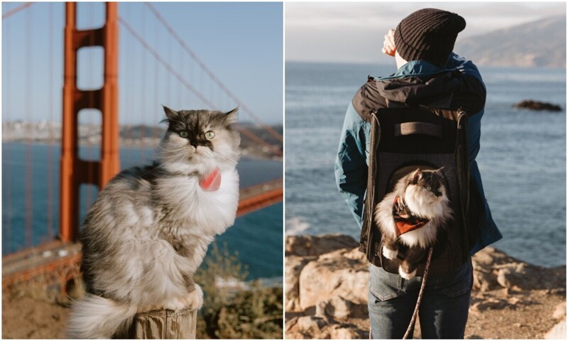 A traveling cat travels around the cities with its owners (30 photos)