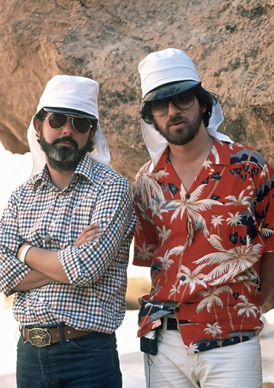 George Lucas and Steven Spielberg on the set of Raiders of the Lost Ark. 1981