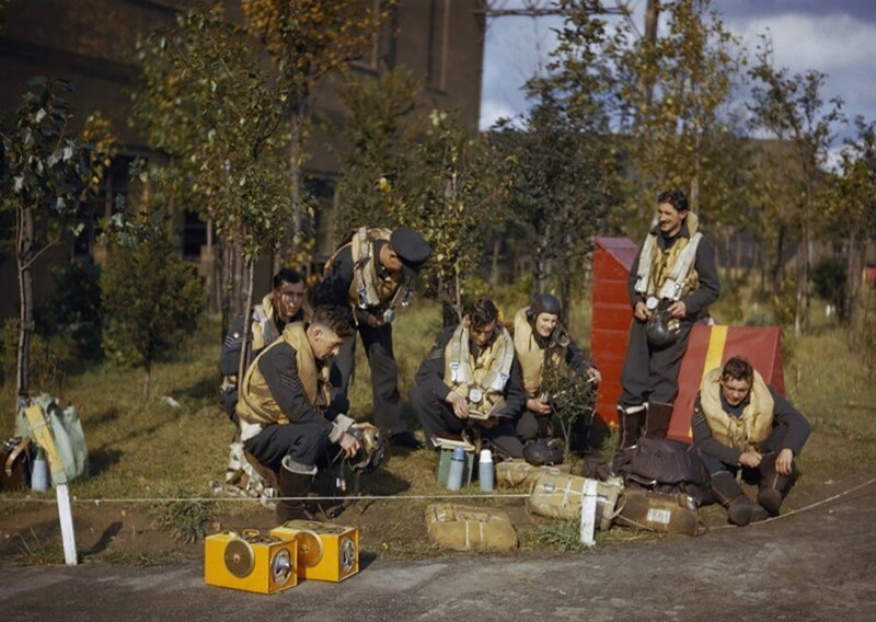 The crew of the Avro Lancaster bomber waiting for the command to take off. England, October 1942