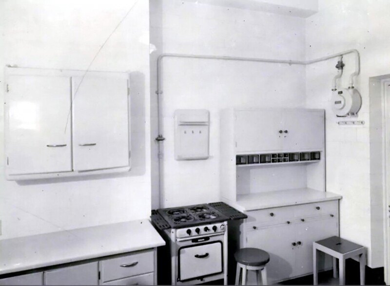 Kitchen interior in a high-rise building on Kotelnicheskaya embankment. Moscow, 1951