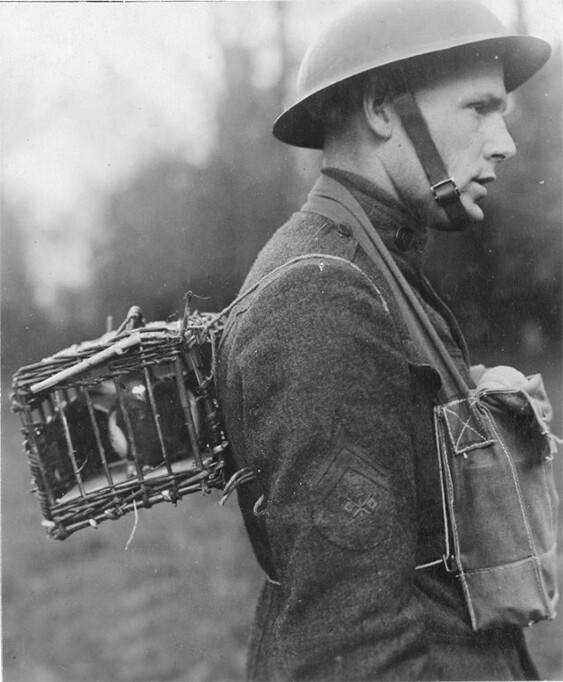 In the foreground are carrier pigeons in yellow boxes - for communication in case of an emergency or failure of radio communications.