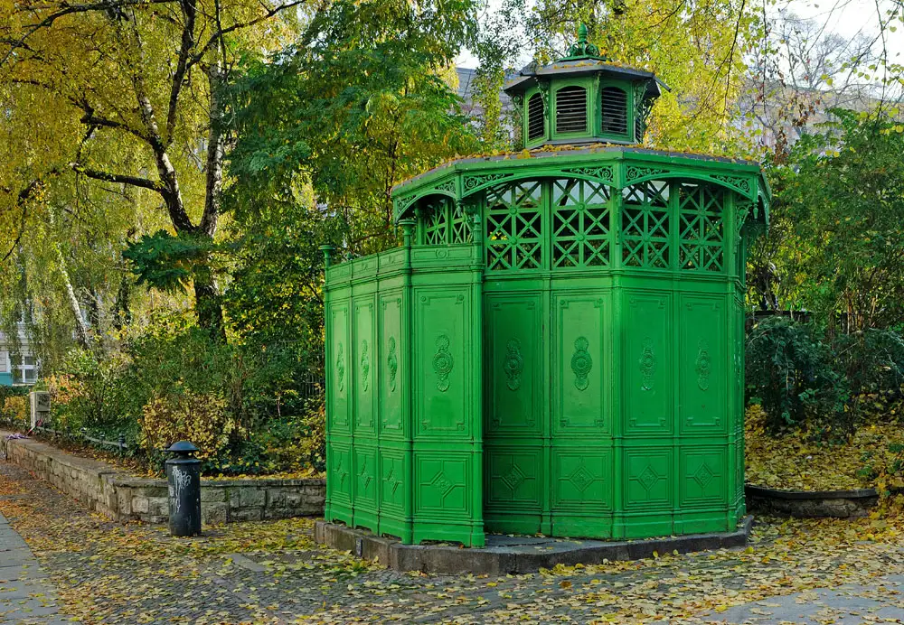 Berlin, as a modern and cultural city, does not experience lack of automated booths with self-cleaning. However, it remains there are about 30 historical latrines of the late 19th - early 20th centuries, dubbed the Cafe Octagon. In one of them, by the way, the heroes of the film "Agents of A. N. K. L." fought. Café Achteck originally were created for men, but now some have been rebuilt for the needs of both floors.