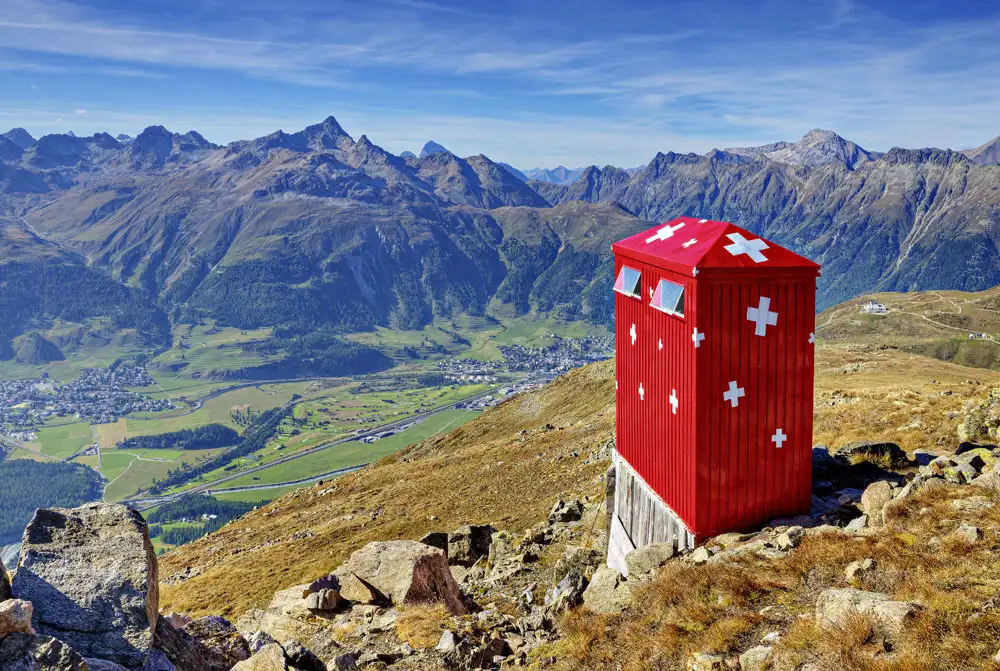 In September 1899, the painter Giovanni Segantini retired to alpine hut on the Schafberg mountain above Pontresina to finish triptych "Life. Nature. Death" for the World Exhibition in Paris. My he met his death in this very place. And life and nature today you can enjoy here, at an altitude of 2731 m, having lunch in a mountain restaurant or sitting on the toilet. named after Segantini.