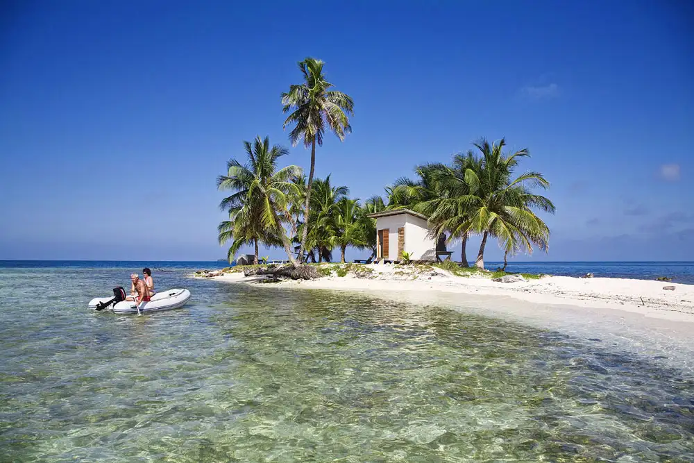 A group of tiny islands in the middle of the Belize Barrier Reef protected marine reserve, a great place for diving and just swimming in crystal clear water. Only the sea, white sand, palm trees and a dry closet with two cabins. For especially intelligent tourists.