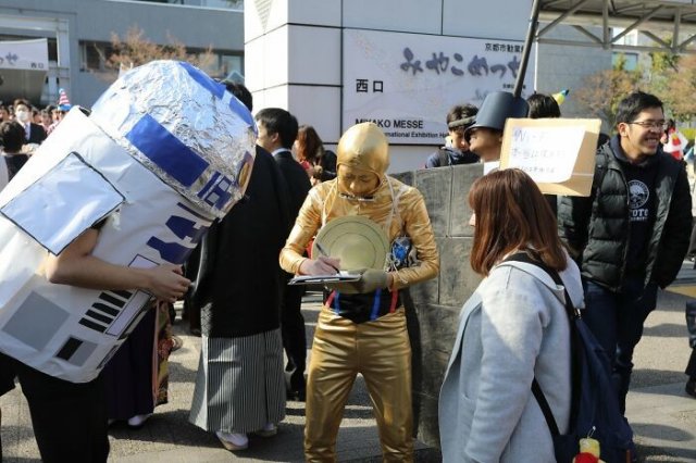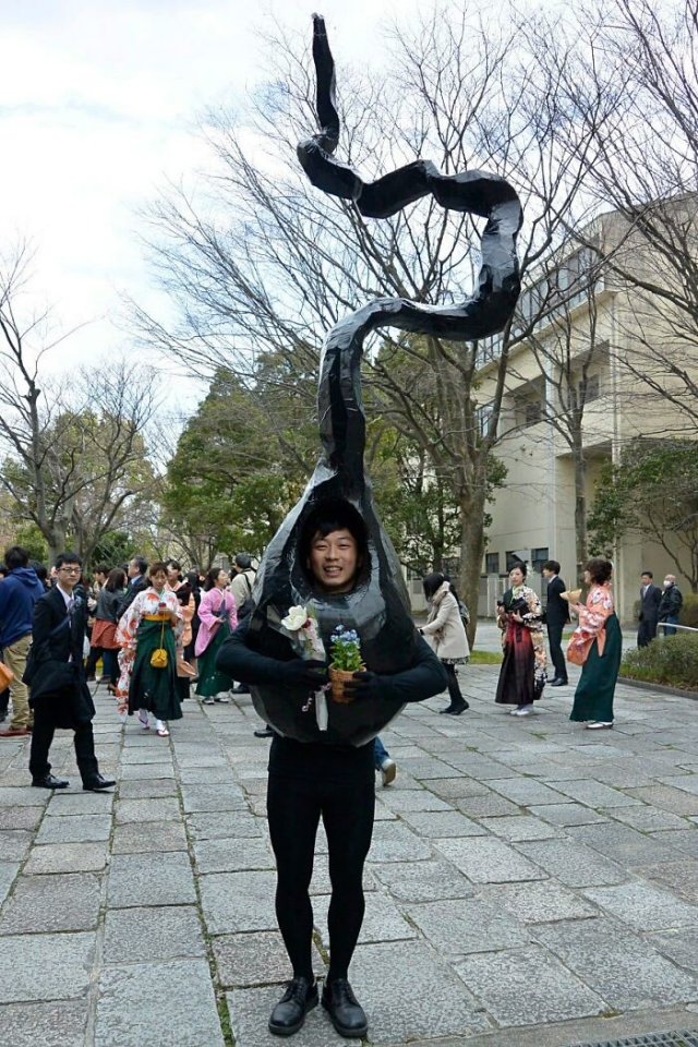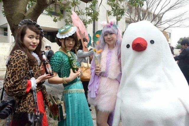 In Kyoto, Japan, students have an unusual tradition. Coming to receive a diploma, they dress up in a variety of costumes. And remind it begins not an important and official ceremony, but some kind of parade on Halloween. However, it looks unusual and very funny.