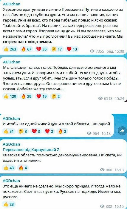 - Russia may attack the Belgorod region under a "foreign flag", according to the Institute for the Study of War (https://www.understandingwar.org/backgrounder/russian-offensive-campaign-assessment-november-22). Kremlin propagandists have begun to promote the hypothesis that Ukrainian forces are seeking to invade Belgorod Oblast, analysts say, while other propagandists point out that Russian forces need to regain control of Kupyansk in Kharkiv Oblast to minimize the threat of a Ukrainian attack.