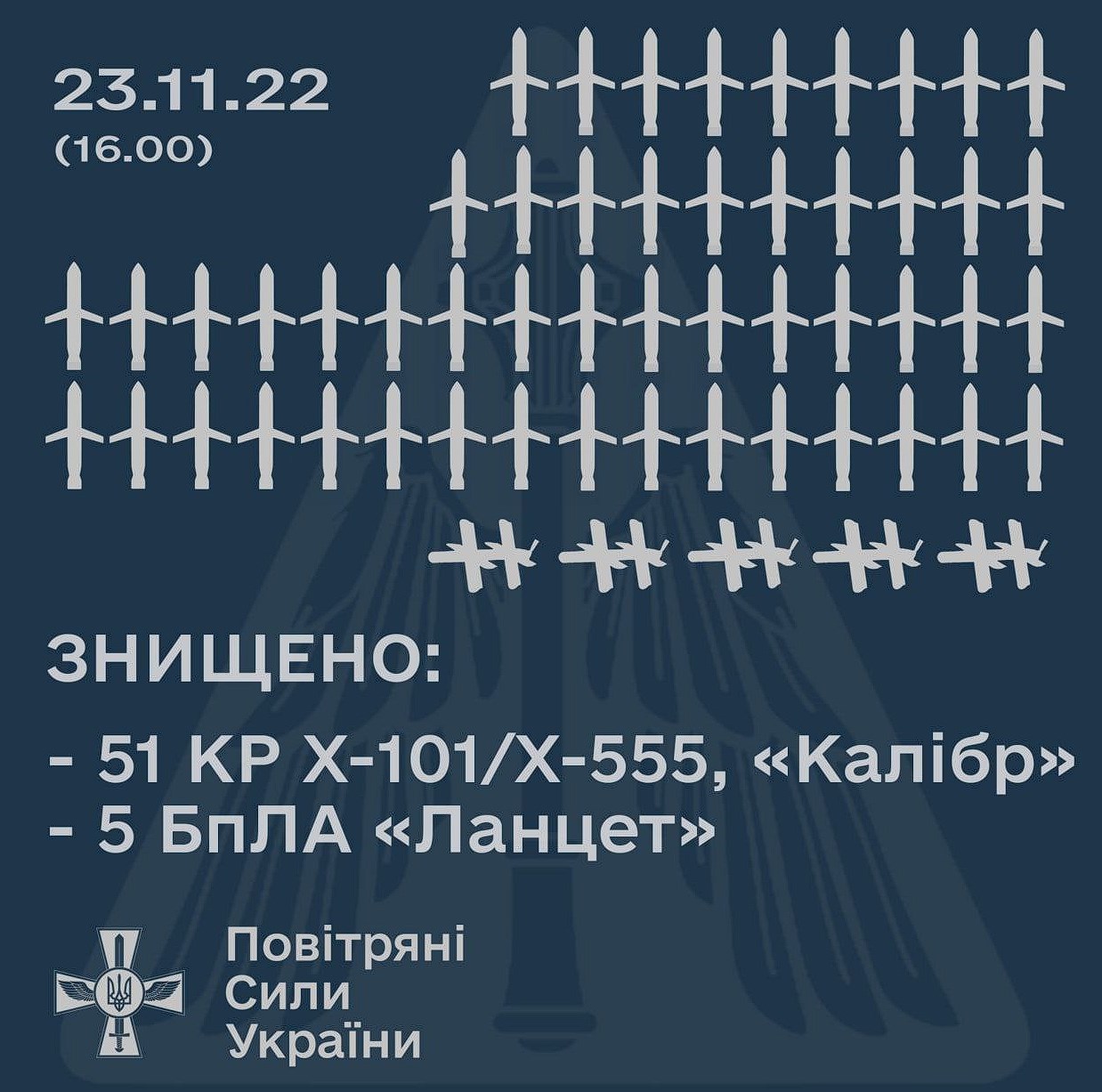- Our air defense forces — just titans. They shot down 51 out of 70 missiles and 5 UAVs.
