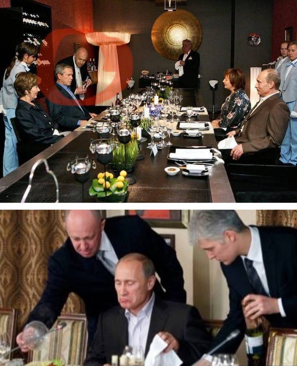 - In the photo – 2002, the bunker takes Bush. Yevgeny Prigozhin serves them at the table.