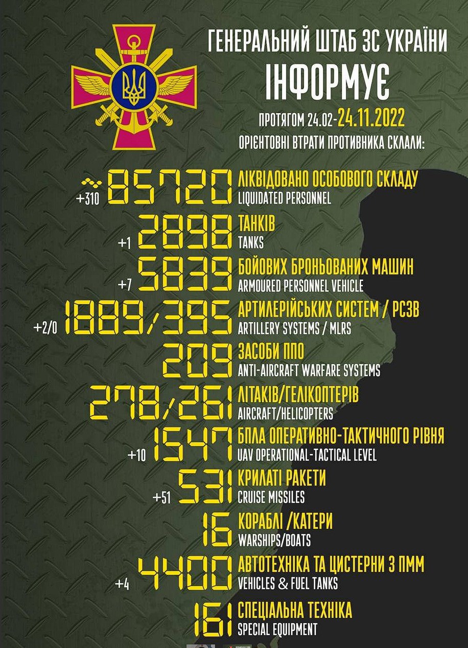 In total, from October 17 to November 23, according to Monastyrsky, the Russian Federation carried out almost 600 missile attacks on the territory of Ukraine.