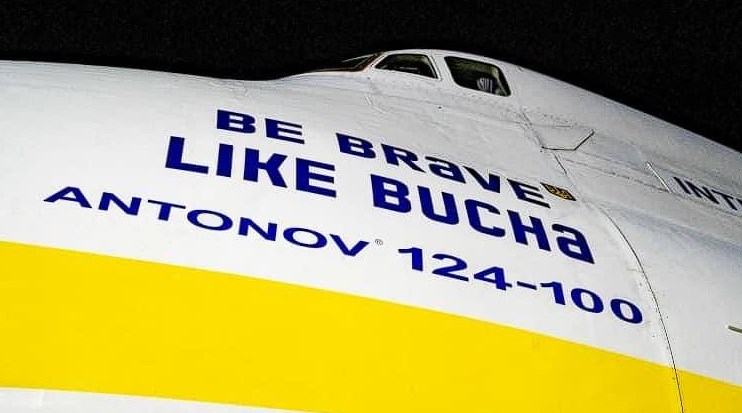 Photo from Oslo airport with An-124 aircraft "Be brave like Bucha" .