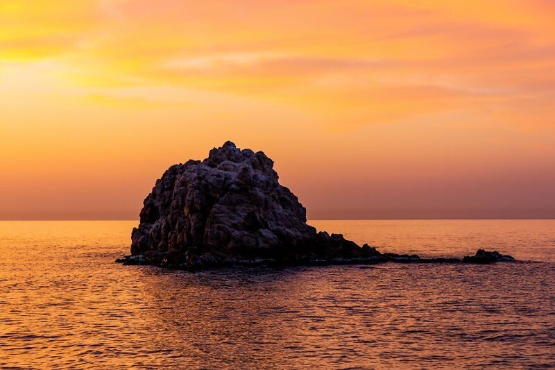 Sunset over Roca Grossa in Calella, Spain