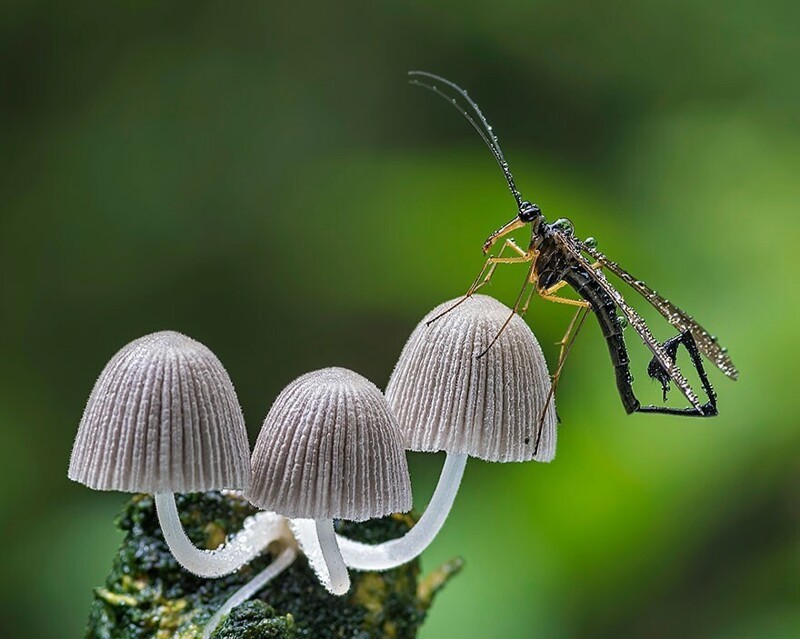 Scorpio sits on mushrooms