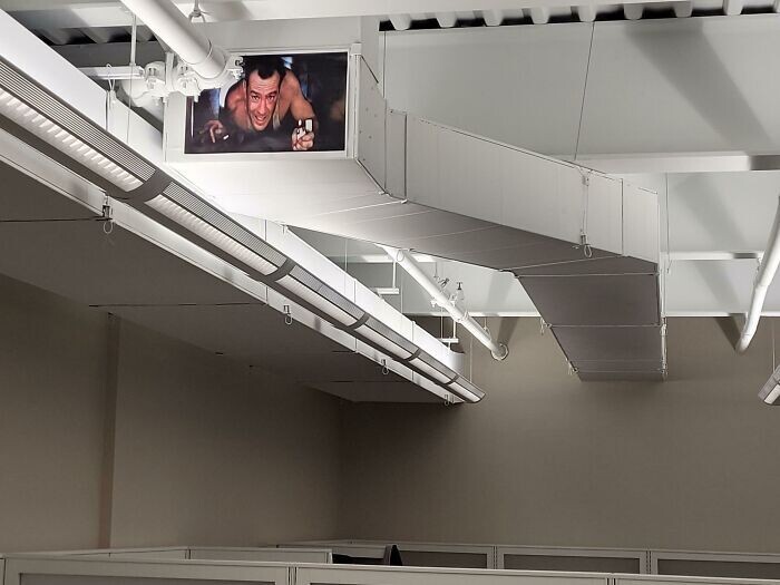 10. "Tribute to Bruce Willis in our office"