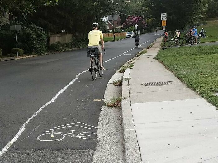 6. City officials say construction bike lane will take at least 7 years. We drew it with chalk show how easy it is. Paint coming soon