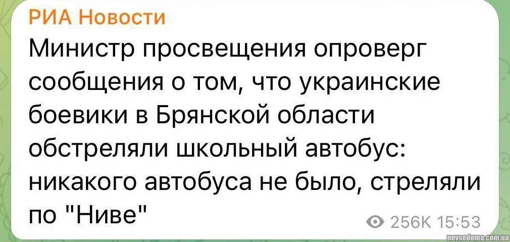 By the way, towards the evening, the official Russian media denied the fact that there was some kind of school bus, because all the children are now studying remotely