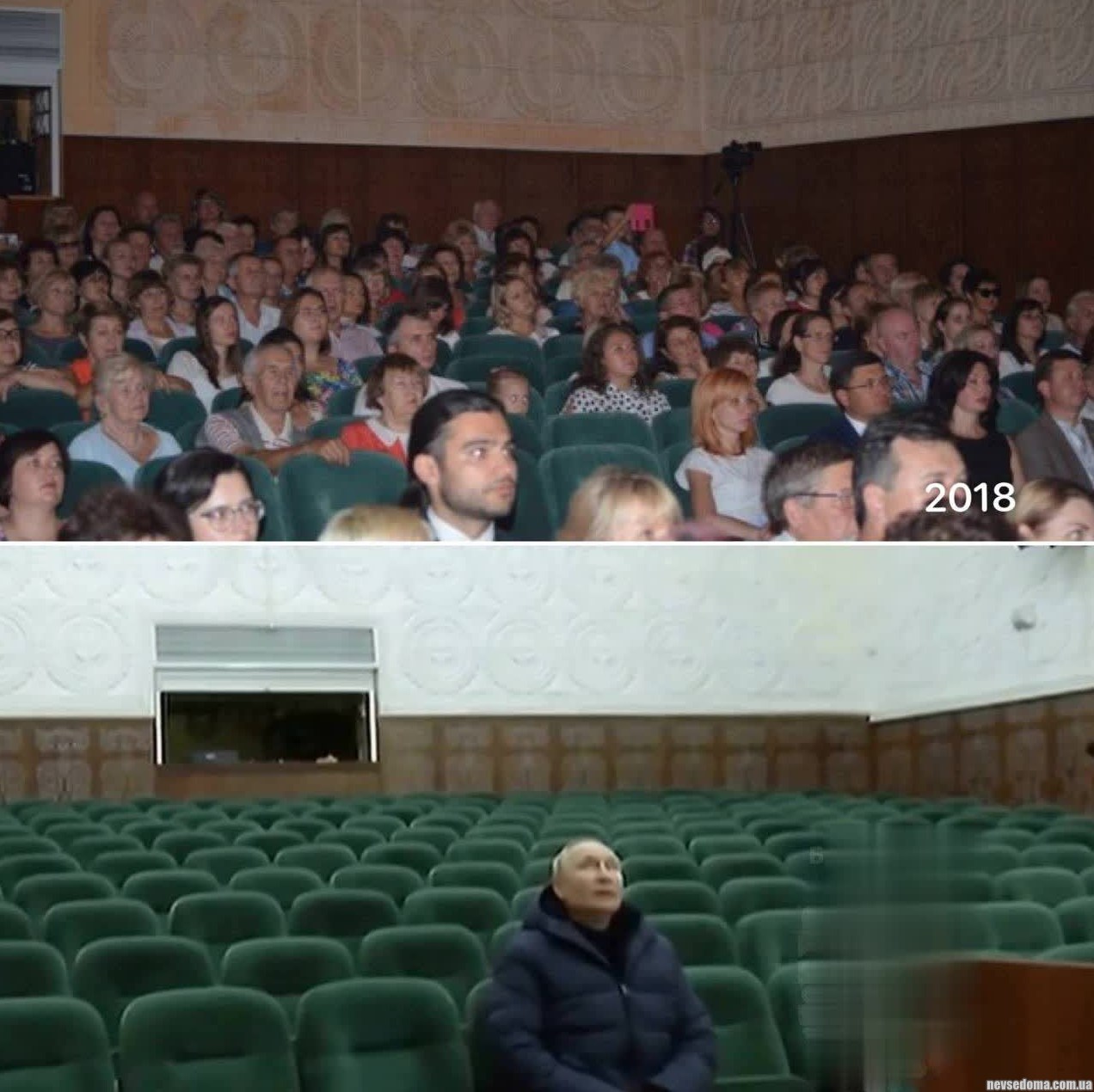 Pynya boasted about the “reconstruction” of the Philharmonic in Mariupol, but the only thing that has changed there since 2018 is that the chairs are cleaner than steel.