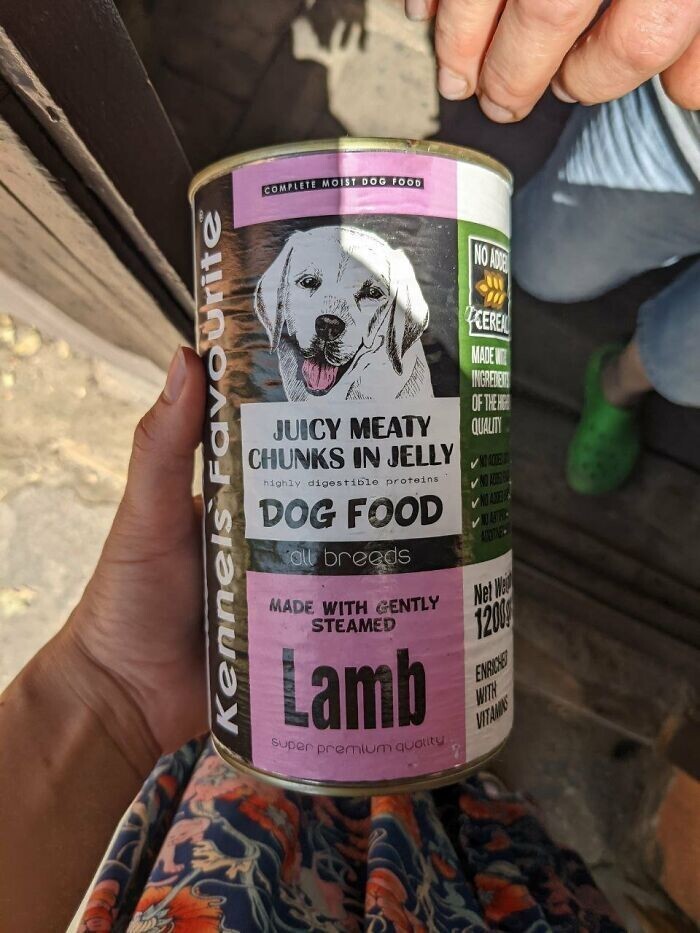 People come and bring food. But they clarify that the dog is old and sick, so she needs good food.