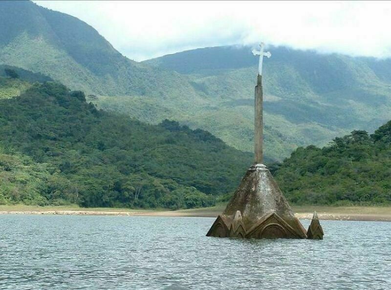 Remains of the city of Potosi in Venezuela, which was flooded during the construction of the dam