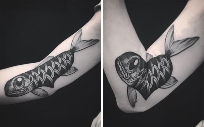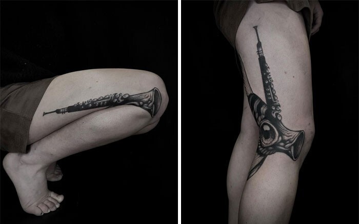 35 unusual tattoos, the idea of which is revealed in motion (35 photos)