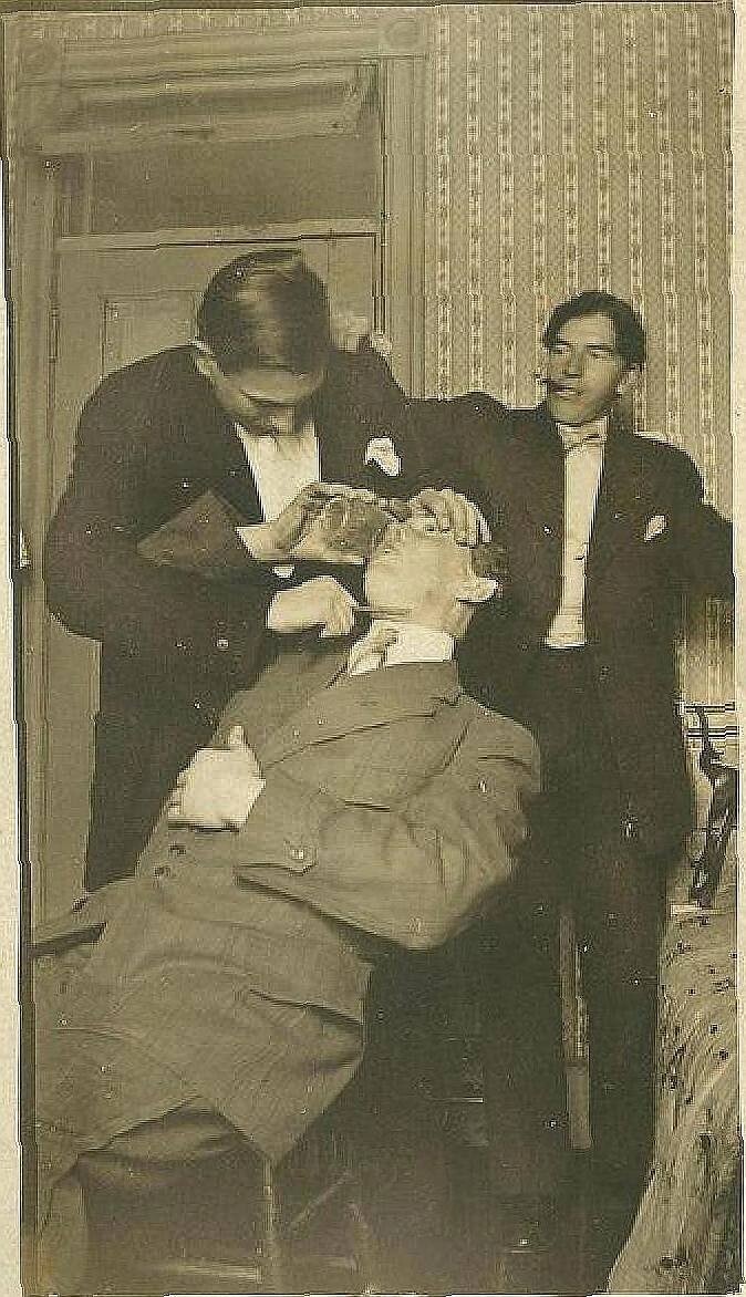 < br> 13. Extreme student game - drink a glass of water with a straight razor tightly pressed to the throat. 1910