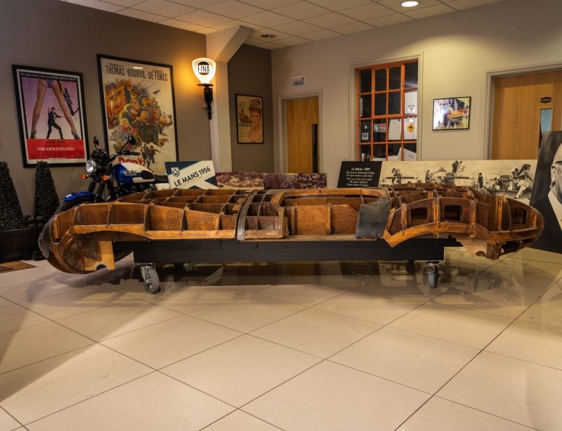 Listed for sale on Historics Auctioneers historical wooden frame. Bodies were made on it by hand sports Jaguar D-Type. The lot is valued at around £80,000. sterling.