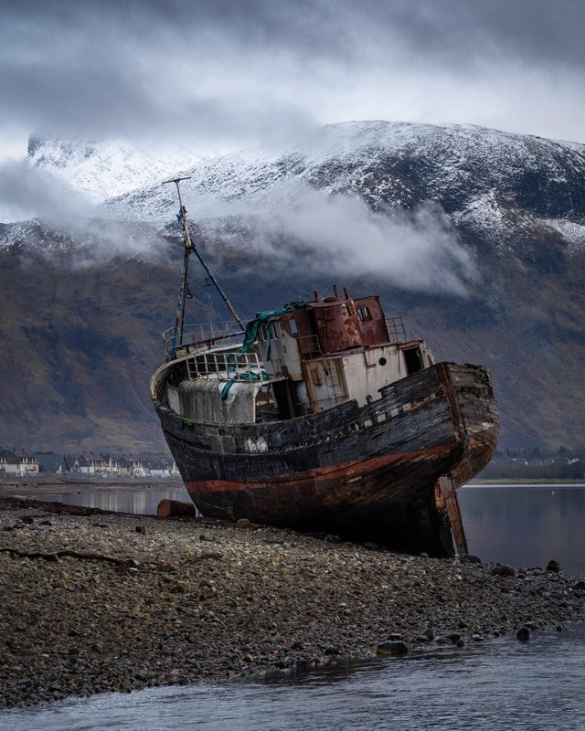 Rusting fishing boat in Scotland