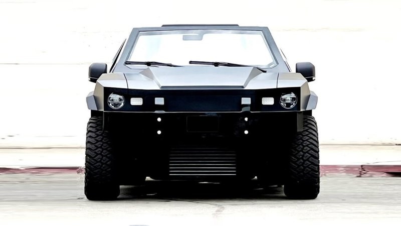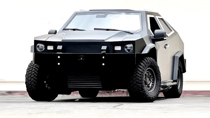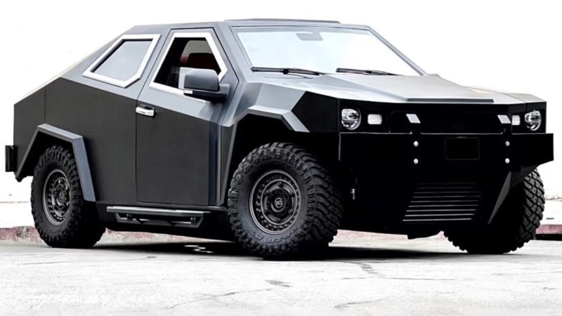 US Specialty Vehicles chose an uncharacteristic body shape: this is not a standard SUV, but rather a huge hatchback with a strong sloping back and only a pair of doors.
