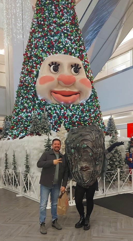 A shopping mall in Canada is decorating a Christmas tree with a talking face.