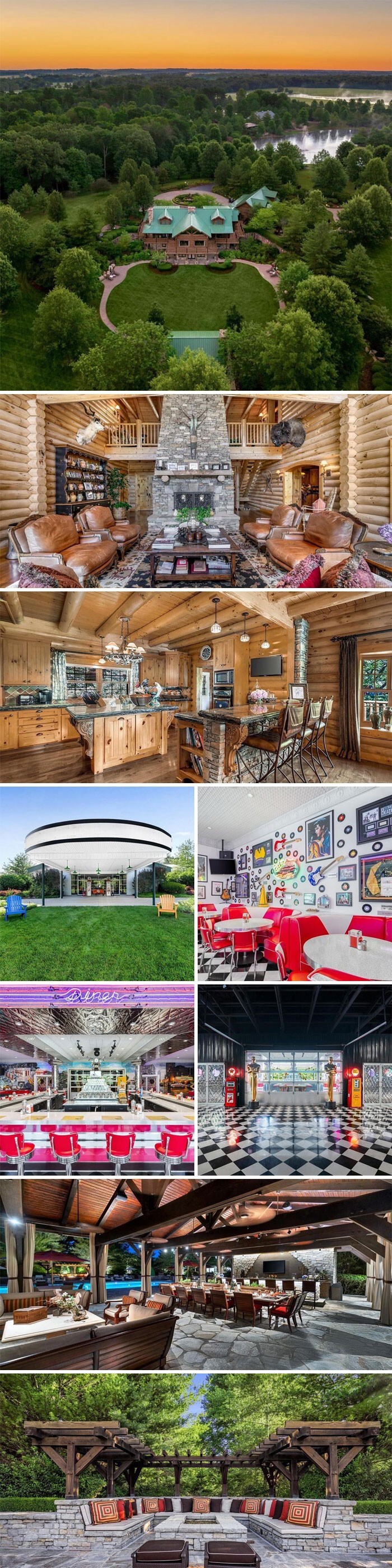 3-story log cabin, main house, 50's style diner, classic car museum, swimming pool, shooting gallery, amphitheater, more than 3.5 km paved trails and much more.