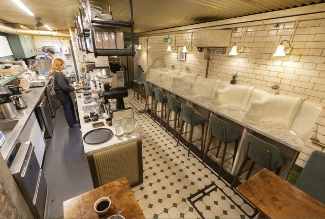 Before us is an interesting idea of English entrepreneurs who decided to give a second life to the historic public restroom in London. Previously, there was a toilet, which opened in 1890, worked for 70 years from breaks, and now it has become... a coffee shop. In total there are 36 square meters. During the work, 12 layers of paint were removed, but this is not the main thing - the smell is gone.