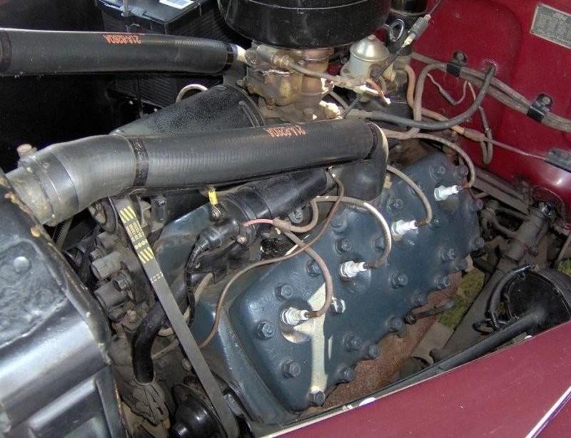 Under the hood is an eight-cylinder lower valve V-shaped motor. He could accelerate the car to 90 miles per hour, which for more than enough trucks. Gearbox mechanical, four-speed with synchronizers. Onboard power supply 12 volts. The gas tank is located under the cab.