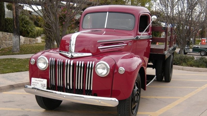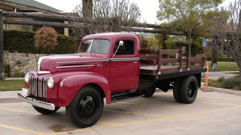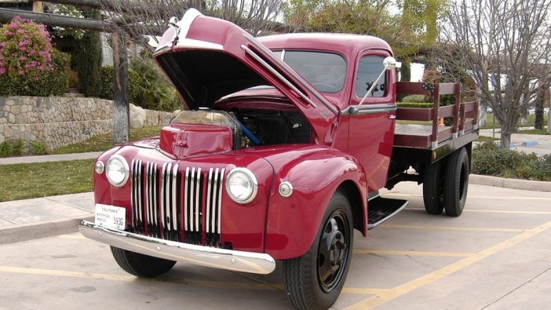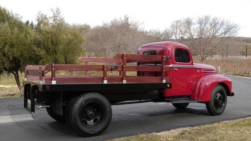 This handsome red Ford 1 1/2 ton is one such truck from the post-war era. The year of its release is 1947.