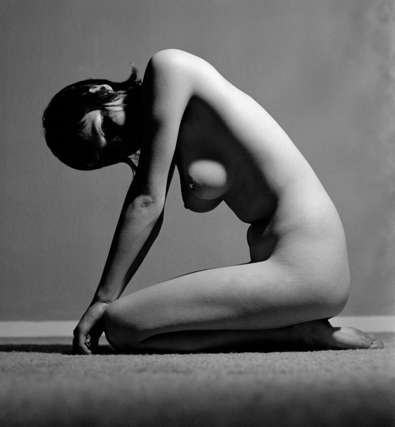 December 29, 1972. London. Actresses participating in the production of the play "Oh, Calcutta!" and stagehand.