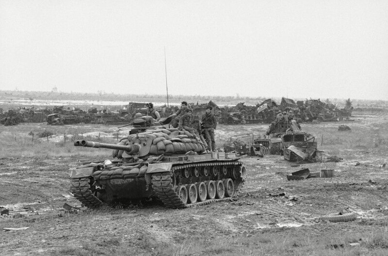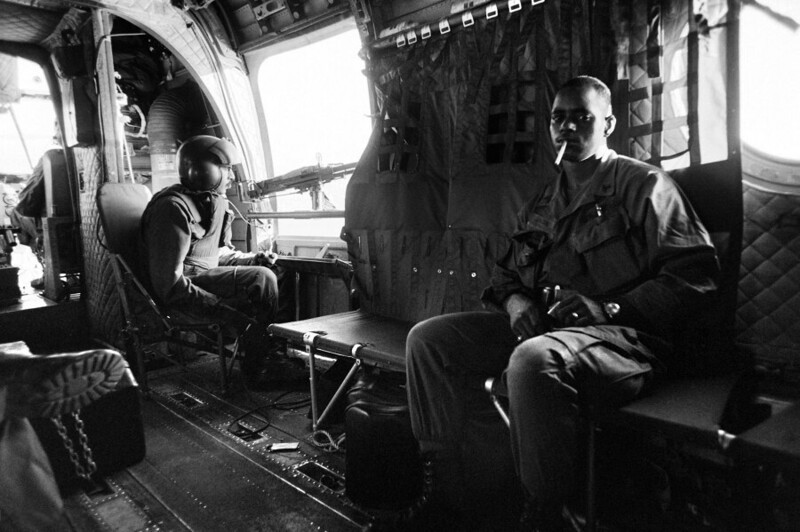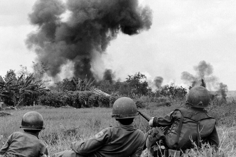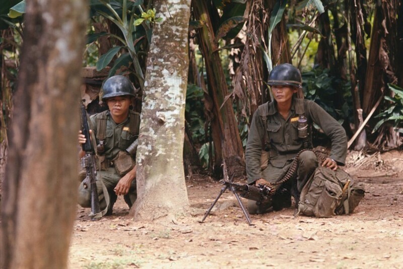 December 1972 Vietnam. South Vietnamese soldiers are watching the work of aviation. Photo by Ennio Iacobucci.