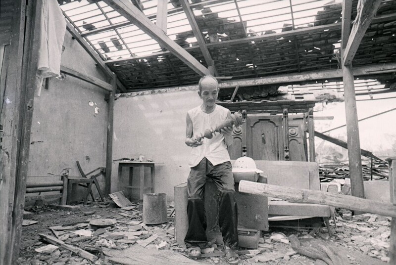 December 2, 1972 Phu Jao, Vietnam. A man in the ruins of his house.
