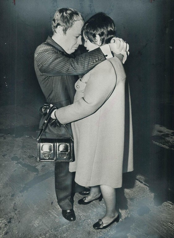 December 4, 1972. Newly elected Mayor of Toronto David Crombie and his wife Shirley embrace after learning of the victory. A photo Graham Bezant.